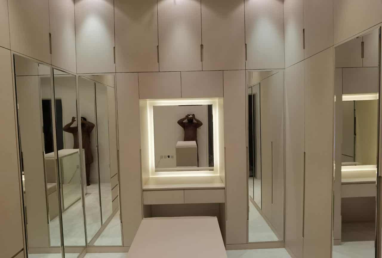 نقدّم خدمات تفصيل غرف الملابس بتصاميم عملية وعصرية تلبي جميع الاحتياجات وتناسب مختلف المساحات. نبتكر حلول تخزين ذكية تشمل أرفف، أدراج، علاقات، وأنظمة تنظيم تساعد على ترتيب الملابس والإكسسوارات بسهولة. نستخدم خامات عالية الجودة وتشطيبات أنيقة تضيف لمسة فخامة وتضمن المتانة وطول العمر. نحرص على الدقة في القياس والتنفيذ، ونوفّر خيارات متعددة للألوان والتقسيمات حسب الطلب، مع التزام كامل بالمواعيد لتقديم غرفة ملابس مريحة وعملية تعكس ذوقك الخاص.